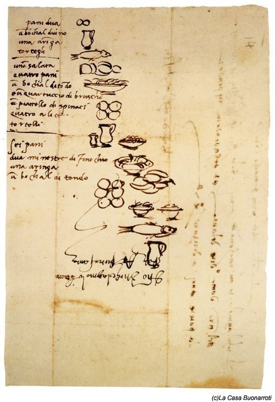 ... 또 공개된 이미지에는 빵 두 조각, 청어 한 마리, 포도주 1/4, 펜넬 수프, 또르텔리 등의 글도 적혀 있다. 한편 1475년 이탈리아 카프레세에서 출생한 미켈란젤로는 1564년 향년 89세의 나이로 세상을 떠나기 전까지 ‘천지창조’ ‘다비드’ ‘최후의심판’ 등의 작품을