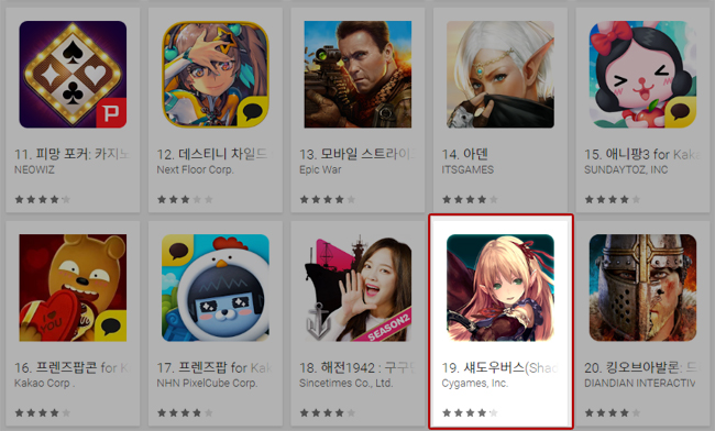 ... 한편 섀도우버스는 지난 2016년 6월 일본에 서비스를 시작해 구글플레이 매출 2위, 애플앱스토어 매출 3위를 기록한 바 있으며 국내 구글플레이에서는 28위를 기록 중이다. [게임조선 편집국 gamedesk@chosun. com] [gamechosun