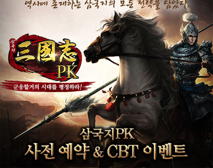 ... ‘삼국지PK’ CBT는 안드로이드 사용자만 참여할 수 있고 회사 측은 참여자 전원에게 금화 및 VIP 2만포인트, 은화 20만, 목재 20만, 식량 20만, 연철 2만, 경험서 50권을 지급한다. 또 추첨을 통해 5명에게 각각 황금 10돈, 총 50돈을 증정하며 사전 예약과