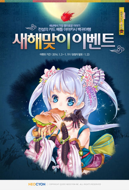 ...com/neocyon)에 올린 유저 중 50명을 추첨해 ‘라쇼몬 가챠’ 10회 티켓을 지급한다. 네오싸이언은 이번 콘테스트를 통해 선발된 한국 귀신들에 대한 심사를 통해 게임의 세계관과 적합한 귀신들의 경우 게임에 적극 삽입할 예정이다. 또 자신의 덱 스크린 샷을 찍어 네