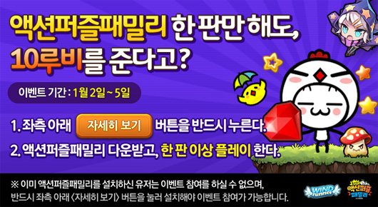 ... 양사의 대표 타이틀이 함께 마련한 이번 크로스 프로모션을 통해 출시 직후 구글 플레이 및 애플 앱스토어 인기 무료 앱 1위, 카카오 게임하기 인기 순위 1위를 모두 석권한 ‘돌아온액션퍼즐패밀리’와 출시 이후 꾸준한 인기로 국민 모바일게임으로 자리매김한 ‘윈드러너’ 간의 다양한