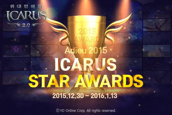 ...와이디온라인은 지난 2015년 한 해 동안 ‘이카루스’를 빛내준 유저들에게 감사한 마음을 담아 특별한 시상식을 마련했다. ‘너의 목소리가 자꾸 들려’ 상과 ‘이거 참 매력발산’ 상, ‘심쿵 아닌 지갑쿵’ 상 등 총 12개 부문별로 1등을 선정하고, 수상자에게는 아이템 상점을 통해