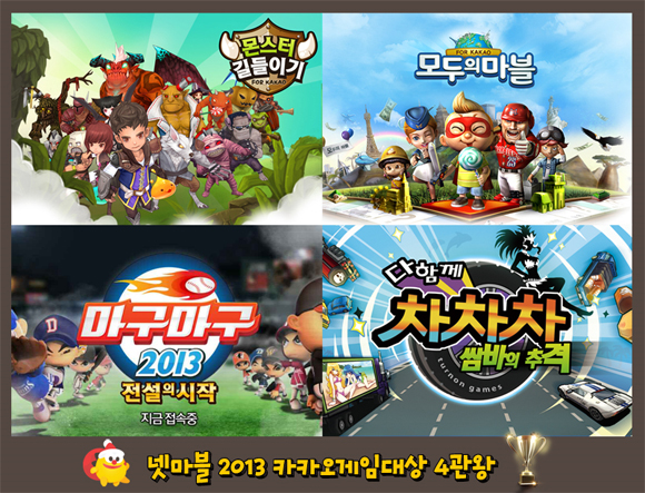 ... 넷마블 이정호 본부장은 "처음 열린 '카카오 게임대상'에서 자사의 게임이 4개나 선정돼 매우 기쁘다"며 "올 한 해 넷마블표 모바일 게임을 사랑해주신 이용자분들에게 다시 한번 감사드리며 국내 넘버원 모바일 퍼블리셔로 이용자분들이 재미있는 게임을 지속적으로 개발하고 이를 잘 서
