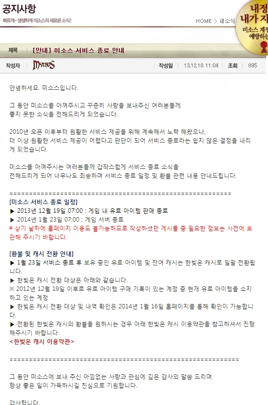 ... 이용자가 보유 중인 캐시는 ‘한빛온’ 캐시로 일괄 전환된다. 또 2012년 12월 19일 이후로 유료 아이템 구매 기록이 있는 계정 중 현재 유료 아이템을 소지한 계정은 모두 환불돼 ‘한빛온’ 캐시로 전환된다. 정확한 환불 내용은 2014년 1월 16일 홈페이지를 통해 확