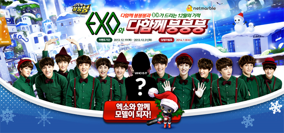 ... 엑소는 '늑대와 미녀' '으르렁' 등의 히트곡을 선보이며 정규 1집 앨범 판매량 100만장을 눈 앞에 두고 있는 인기 그룹이다. 다함께붕붕붕은 이번 엑소 홍보모델 발탁을 통해 'EXO 차량'과 'EXO 교복의상' 아이템을 공개했다. 게임 내 교복 의상을 입은 엑소 멤버들이