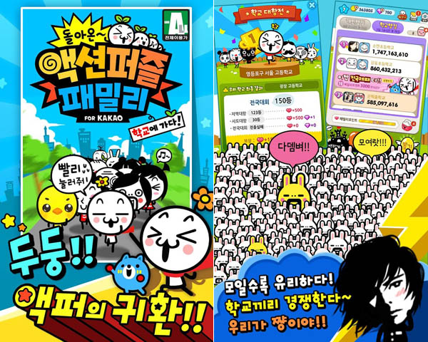 ... 액션퍼즐패밀리1은 2007년 8월 1일 첫 론칭해 출시 190여 일 만에 100만 다운로드를 달성했고 1년 뒤 출시된 후속작 2편은 이 기록을 40일 정도 앞당기면 150일만에 100만 다운로드를 달성하며 흥행을 이어갔다. 2009년 10월 26일 출시된 액션퍼즐패밀리3
