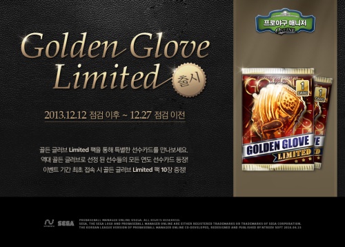 ... ‘골든 글러브‘ 선수카드 출시를 기념해 오는 12월 27일까지 최초 접속 시 골든 글러브 리미티드(Limited)팩을 10장씩 지급, 매일 접속 시 1장씩 추가로 제공하는 이벤트도 진행된다. ‘골든 글러브 리미티드팩’은 역대 골든 글러브로 선정된 선수들의 모든 연도 선수카