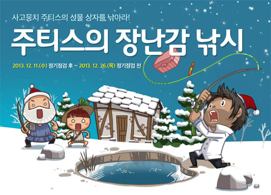 ... 11일부터 26일까지 모든 리니지 유저에게는 주티스의 도구 상자를 지급하고 여기서 얻은 낚싯대를 통해 장난감 상자를 획득할 수 있다. 장난감 상자에서는 지룡의표식이나 용의심장, 발라카스의 마갑주 등의 아이템을 얻을 수 있다. 주티스의 낚싯대는 개당 총 50회까지 사용할 수