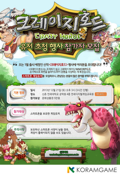 ... ‘크레이지호드’는 신개념의 슬라잉(slide & flying) 액션 모션을 도입, 손가락으로 화면을 터치해 슬라이드 방식으로 몬스터를 공격하는 스킬을 구현해 색다른 타격감과 전투의 묘미를 선사한다. 쿤룬코리아는 내년 1월 중 ‘크레이지호드’를 국내 모바일게임 시장에