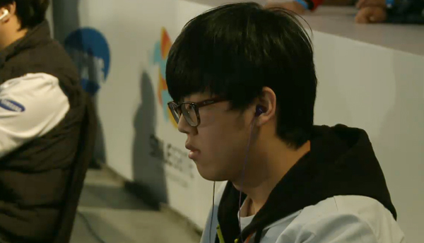 ... 홍콩 대표인 '니콜라스' 리 캄파이는 별다른 수비 방법을 찾지 못하고 땅거미 지뢰 전까지 피하기만 했다. 그 사이 앞마당을 확보한 원이삭은 로봇공학 지원소를 소환하며 거신을 준비했다. 하지만 땅거미 지뢰에 예언자 2기를 모두 잃으며 빈틈을 내주고 말았다