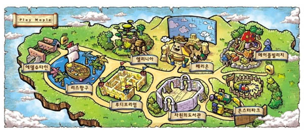 ... 체험전은 게임 맵을 흡사하게 구현해 게임 속 항구와 숲, 압벽, 지혜의 성 등이 5개의 전시공간(에델슈타인, 라스항구, 루디브리엄, 엘리니아, 페리온,차원의도서관)과 메이플빌리지, 몬스터파크로 구성된다. 또한 메이플스토리 아트홀에서는 지난 10년간의 역사를 한 눈에 살필 수 있