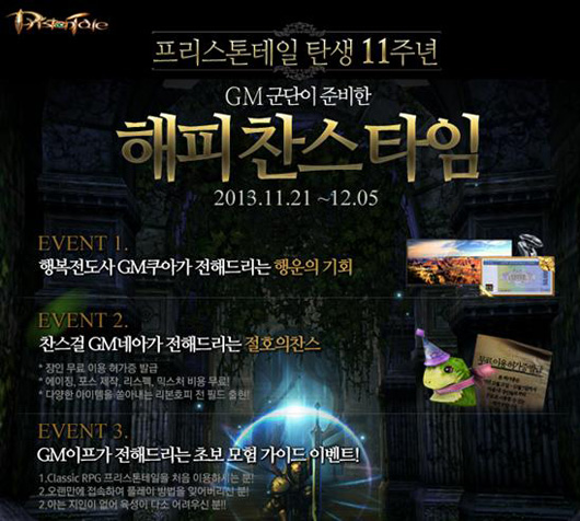 ... 또, 아이템 강화, 제작, 조합 등 게임 내 장인NPC를 이용하는 비용이 모두 무료로 제공되고, 모든 지역에 출현하는 프리스톤테일의 막내 몬스터 '리본호피'를 사냥하면 80~100레벨의 무기 상자 등 다양한 아이템 등이 쏟아진다. 정통 RPG인 프리스톤테일을 처음 접하거나