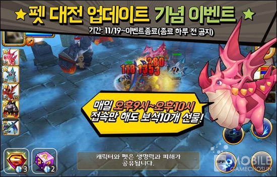 ... 원 터치로 모든 플레이가 가능해 누구나 쉽게 적응할 수 있고 ‘자동 스킬’ 버튼을 통해 화끈하고 강력한 전투 스킬이 가능하다 이번에 업데이트된 펫대전은 자신이 보유한 펫 5마리를 선택해 다른 이용자와 대전하는 시스템이다. 그간 사용 가능한 펫의 숫자가 최대 3마리였다는 점을