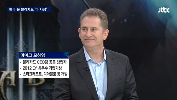 ... 마이크 모하임 대표는 아시아국 순방 중 한국에만 들린 이유를 묻는 손석희 앵커의 질문에 "최근 스타크래프트2 마지막 확장팩인 '공허의유산' 이 출시됐다"며 "스타크래프트 시리즈를 특히 사랑해준 한국 게이머들에게 감사하다는 말을 전하고자 한국을 방문했다"고 말했다. 이