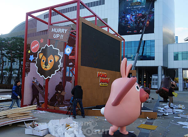 ... 또한 계단을 이용한 홍보 포스터는 물론 주변 건물까지 각종 게임들의이미지로 가득했다. 다음은 지스타2013행사 하루 전 벡스코 외부 모습이다. [정기쁨 기자 riris84@chosun