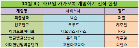 ... 먼저 넥슨이 공개한 '퍼즐삼국 for kakao'는 삼국지를 배경으로 장수카드를 모아 전투를 펼치는 퍼즐액션 RPG로 게임 진행은 '퍼즐앤드래곤'과 유사하다. 같은 속성의 퍼즐을 맞추면 해당 속성을 가진 아군의 장수가 적을 공격하는 방식이다. 던전을 정복하며 레벨