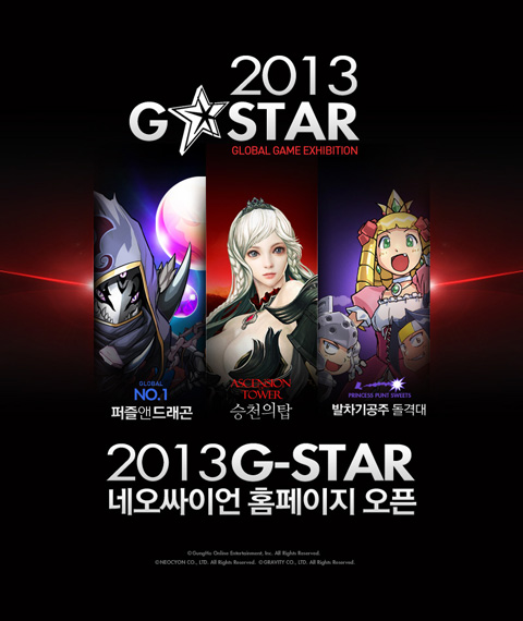 ... 공개된 특별 페이지는 지스타 2013에 출전하는 '퍼즐앤드래곤' '승천의탑' '발차기공주돌격대'로 구성됐으며 각 게임의 주요 캐릭터들이 원화로 등장한다. 또 플레이 장면을 담은 동영상도 함께 공개된다. 이용자는 이번 특별 페이지를 통해 지스타 부스 소개와 현장 이벤트에