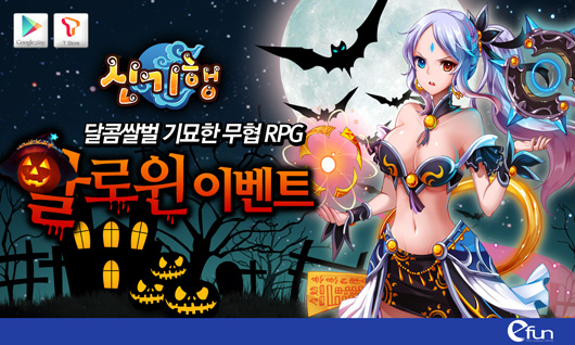 ... 또 10월 31일 단 하루 할로윈 데이에 출석하면 즉시 동전구정, 더블경험단, 활약석, 영웅활약석, 광석세트, 요루석세트 등이 들어 있는 금옥만당패키지를 전원 받을 수 있다. 한편 신기행은 명차 만들기 등 SNG풍의 코믹한 퀘스트와 아기자기하고 귀여운 캐릭터가 등장하지만