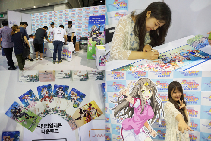 ... 뿐만 아니라 방문객들에게 캐릭터가 그려진 티셔츠와 부채 등 선물도 증정했다. 20일에는 드림컵일레븐 캐릭터인 '우타카네 코토바'의 성우 '아라나미 카즈사'의 팬사인회를 진행했다. 그는 한정판 카드에 직접 사인해주고 인사를 건네는 등 친근한 모습을 보였다