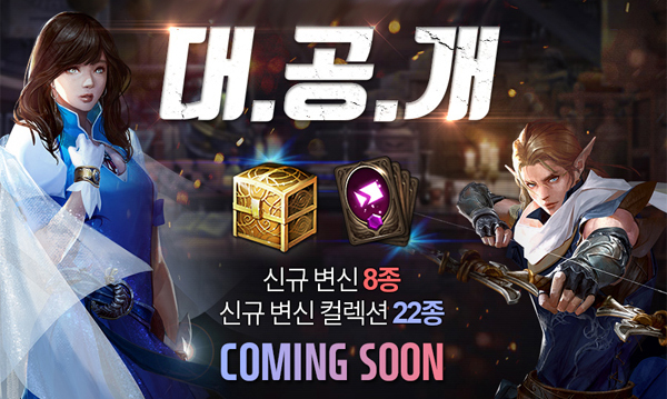 ... ◆ 활 변신 2종 추가, 신규 영웅 변신 물리 방어에 특화된 영웅 데포로쥬와 마법 방어에 특화된 영웅 이실로테는 검 변신이며 사냥에 특화된 영웅 질리언과 전투에 특화된 영웅 오뤤(그린)은 활 변신이다. 기존에는 영웅 활 변신이 경비병(활)과 헬바인 2종만 있었는데,