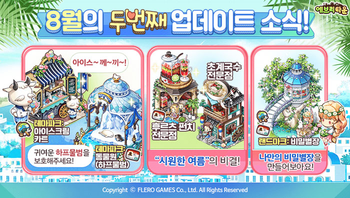 ... 지급되는 전문점은 한 번에 상품이 두 개씩 생산되며, 전문점을 획득하지 못했을 경우에도 조경물이 주어진다. 또한 신규 생산시설 '프리미엄 미트볼 그라탕 전문점(슈퍼박스 전용)'과 '후르츠 펀치 전문점', '초계국수 전문점'이 업데이트 됐다. 이 외에도 신규 테마파크 '동물원'과