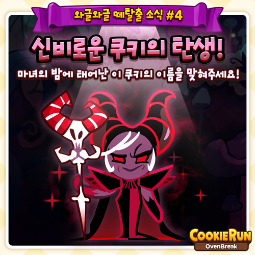 ...신규 쿠키 이름 맞히기 이벤트는 오는 25일까지 쿠키런: 오븐브레이크의 공식 페이스북에서 진행되며, 댓글을 통해 예상되는 쿠키의 이름을 작성하면 된다. 정답을 맞힌 최초 참가자에게는 게임 내 재화인 크리스탈 3000개를 증정하며, 해당 이벤트 게시글이 1000개 이상의 좋아요를
