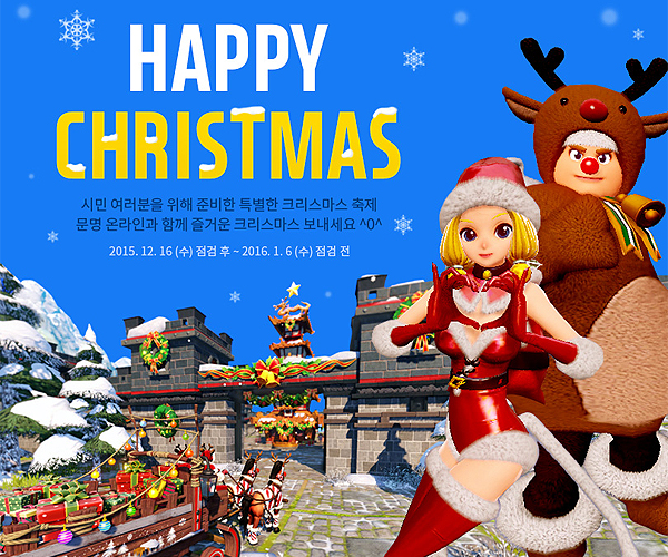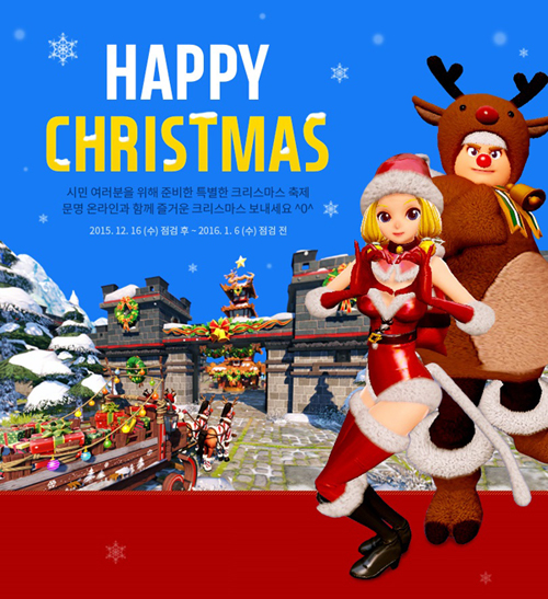 ...또한 같은 기간 동안 매일 오후 5시부터 12시 사이 게임에 접속만 해도 보상이 담겨 있는 크리스마스 선물 보따리와 카드를 지급하고, 오는 27일까지 크리스마스 분위기로 단장한 하카나스 수도성을 배경으로 스크린샷을 찍어 인증하는 유저 중 추첨을 통해 크리스마스 무기 코스튬을 제공하