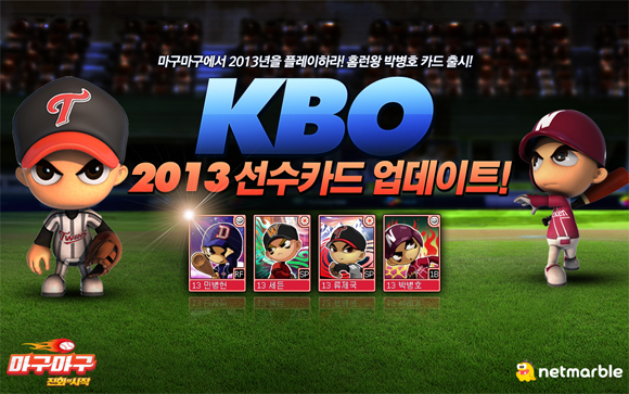 ... 팀별 레어카드 수는 정규 시즌 1,2위를 차지한 삼성과 LG가 각 8개, 넥센이 6개, 두산이 5개로 그 뒤를 이었다. 넷마블 임형준 본부장은 "마구마구의 2013 정규선수카드 업데이트를 손꼽아 기다려온 이용자들을 위해 최대한 발 빠르게 업데이트를 실시했다"며 "KBO 20