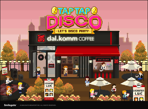 ... 또 전국 달콤커피 매장에 방문하면 매장 내 비치된 PDP 영상을 통해 탭탭디스코를 플레이할 수 있다. 한편 스마일게이트메가포트는 공식 페이스북을 통해 탭탭디스코 출시 기념 이벤트를 진행 중이며 추첨을 통해 달콤커피 기프티콘과 인디 밴드 콘서트 티켓 등을 증정한다. 탭탭디