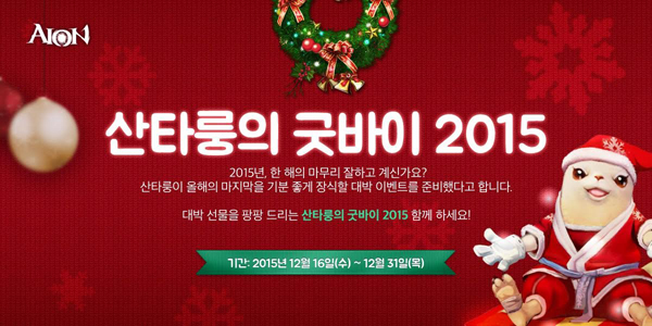 ... 또한 일별 보상과 함께 제공되는 ‘크리스마스 주화’를 ▶7개를 모으면 ‘자쿠룽 무도의 경지’ ▶15개는 신규 탈 것 ‘바람의 킬루스’와 무기 상자 ▶17개 이상을 모으면 '자쿠룽 뾰족한 뿔' 헤드기어를 지급받는다. 이외에 PC방에서 아이온을 즐기면 혜택이 더 늘어난다. PC방에