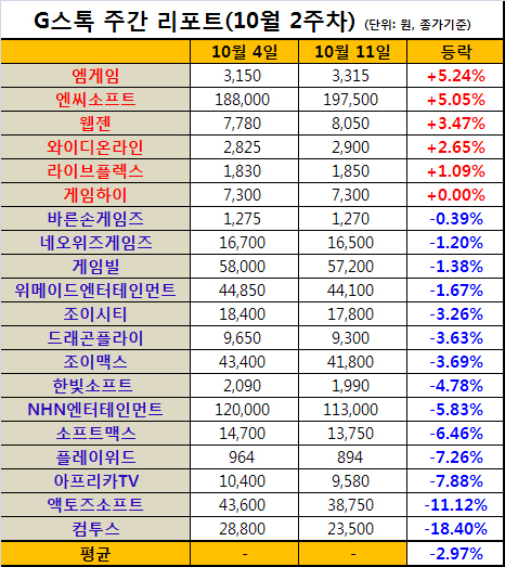 ...97%. 컴투스와 액토즈소프트가 10% 이상 떨어지며 평균 등락률 하락에 영향을 미쳤다. 최근 지분인수를 통해 게임빌과 한배를 탄 컴투스는 이번 주에만 18