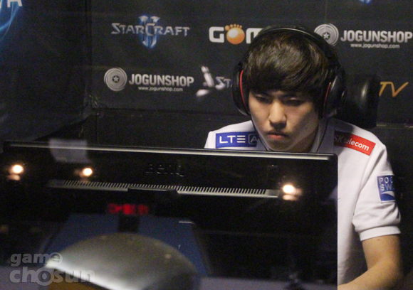 ... 조성주는 9시 지역에 건설한 2병영에서 계속해서 해병을 추가했고 건설로봇까지 대동해 공격을 가했다. 백동준은 광전사와 탐사정, 모선핵을 통해 조성주의 해병과 건설로봇이 자신의 본진에 입성하는 시간을 늦췄다. 이후 추적자를 확보한 백동준은 완벽히 조성주의 벙커라인을 밀어냈다