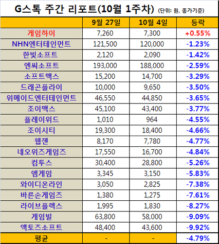 ... 같은 기간 코스피 지수도 0. 73% 떨어졌다. 게임주 역시 셧다운 영향권에서 벗어나지 못했다