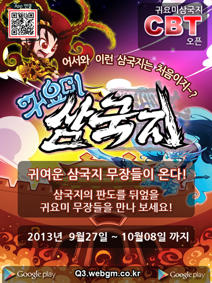 ... 한편 회사 측은 '귀요미삼국지' 테스트를 기념해 레벨 순위 1위부터 20위에게 정식 버전에서 사용할 수 있는 게임 상품을 지급하고 버그를 발견하거나 밸런스에 관한 의견을 '귀요미삼국지' 공식홈페이지 버그게시판에 등록한 이용자 중 10명을 추첨해 1만 원 상당의 상품권을 지급할