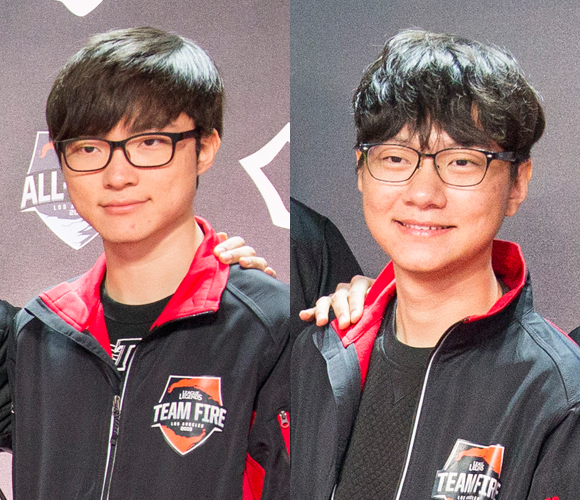 ... 한국 대표로는 '프레이' 김종인과 '스코어' 고동빈이 짝을 이뤄 '스크레이'라는 이름으로 출전했으며, 김종인이 마우스를 잡고 고동빈이 키보드를 담당하게됐다. '둘이서한마음모드'는 두 명의 선수가 하나의 챔피언을 플레이하는 모드로 한 명은 마우스를, 한 명은 키보드를 컨트롤하는