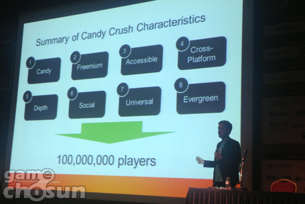 ... 그에 말에 따르면 '캔디'는 일반적으로 달콤하면서도 맛있는 이미지를 떠올리게 하는 요소로 처음 게임을 접하는 유저에게 친숙하면서도 갖고 싶은 욕구를 불러일으키는 효과를 준다고 한다. 프리(프리미엄)은 부분유료화를 뜻하는 것으로 라스 부사장은 "현재 게임시장에서 유료 다운