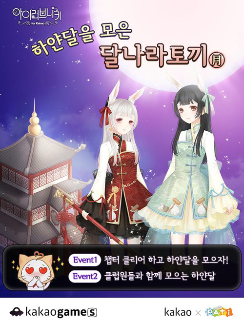 ... 은은한 달빛 색상의 헤어에 방아 찧는 토끼를 연상시키는 아이템 등이 결합돼 신비로운 추석 분위기를 느낄 수 있다. 의상은 기본 레드 색상이며, 유저의 취향에 따라 블루나 민트 색상으로도 리폼 가능하다. ‘달나라 토끼’ 세트 의상은 이벤트 기간 동안 모든 스테이지에서 획득