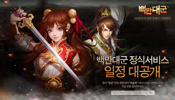 ... 이와 함께 24시간 실시간 전술 조작 시스템을 통해 실시간으로 전시 상황을 파악할 수 있어 더욱 다채로운 전략 경험이 가능하다. 이 게임은 9월 22일(목) 정식 서비스 전까지 ‘복불복 이벤트’와 ‘백만대군 가입 이벤트’를 진행한다. ‘복불복 이벤트’는 9월 20일(화)까지