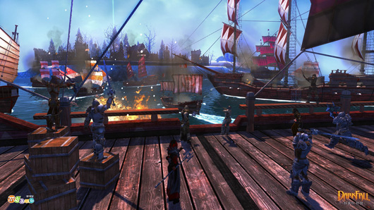 ... 이번에 공개된 스크린샷에서는 2차 비공개 테스트 셋째 날인 28일 아시아 지역에서 첫 선을 보이게 될 해상전 장면을 확인할 수 있다. ‘다크폴’의 해상전은 클랜원이 배에 탑승하고 항해하며 해상기지를 차지하기 위해 상대 클랜과 펼치는 전투 시스템이다. 유저들은 클랜원과
