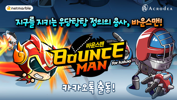 ... 이용자는 불, 얼음, 번개, 독가스, 플라즈마 등 각각 개성있는 능력을 가진 5종의 바운스맨 중 하나를 선택해 공격해오는 외계인을 막고 보스를 무찌르면서 화끈한 액션과 전투를 즐길 수 있다. 이 게임은 친구 초대, 점수 자랑, 게임 플레이시 획득한 선물상자를 친구에게 택배