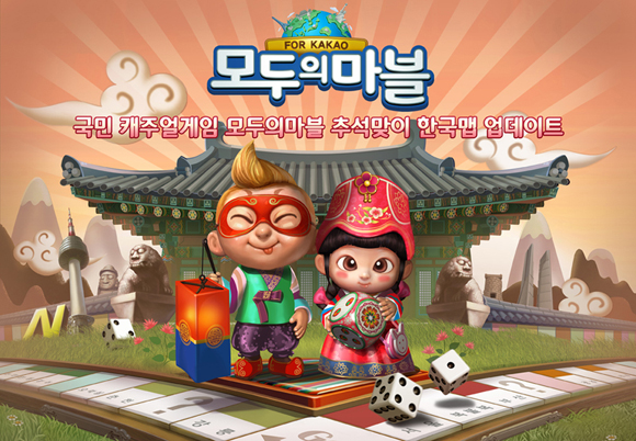 ... 또한 벌칙 및 '복불복' 시스템을 적용해 게임의 박진감을 더했다. 모두의마블은 이번 한국맵 추가로 월드맵, 우주맵 등 총 3개의 맵을 보유하게 됐다. 이정호넷마블본부장은 "이번 추석특집 한국맵 업데이트는 오랜만에 만나는 가족, 친지 등과 함께 둘러앉아 모두의마블을 더욱 즐