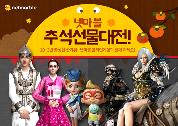 ... 우선 온라인 보드게임 '모두의마블'은 오는 16일부터 30일까지 이용자가 3판을 플레이 하거나 PC방 접속, 캐시 아이템 구매 시 송편을 제공한다. 송편은 웹 페이지에서 100% 아이템으로 교환 가능하다. 리얼야구게임 '마구더리얼'은 2013년 프로야구 포스트 시즌 사전