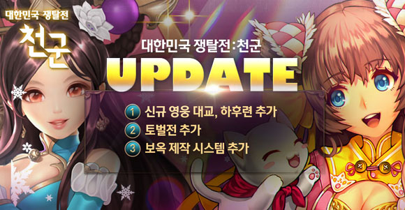 ... 특히 게임에 GPS를 활용, 위치 정보를 통해 주위의 영토를 검색하고, 점령, 약탈해 랜드마크를 차지하는 독특한 콘텐츠가 특징이다. 이번 업데이트를 통해 신규 영웅 ‘대교’ ‘하후련’ 2종을 새롭게 선보이고, 연합 간 랭킹을 겨룰 수 있는 토벌전 및 장비 강화를 위한 보옥