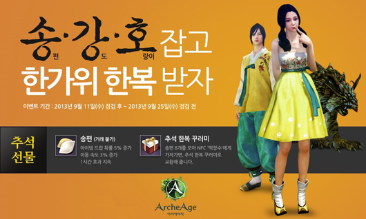 ... 조직원이 되지 못한 유저도 어비스 지역의 빨간 눈 토깽이를 처치하고 토끼발을 획득해 조합하면 보상을 얻을 수 있다. 한편 오는 18일부터 22일까지 추석 연휴 기간 내 접속하는 유저는 게임 플레이를 돕는 버프를 받을 수 있다. 또 추석 맞이 신규 한복의상 아이템을 선보여지며