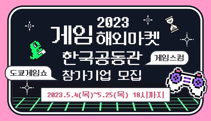 ... 올해도 한국공동관 운영을 통해 국내 우수 게임사와 해외 배급사의 비즈니스 상담 기회를 마련하고 수출까지 이어질 수 있도록 다양한 활동을 지원할 계획이다. 글로벌 론칭 계획과 역량을 갖춘 국내 온라인(PC), 모바일, 콘솔, 차세대 기술(VR, AR 등) 관련 국내 게임 콘