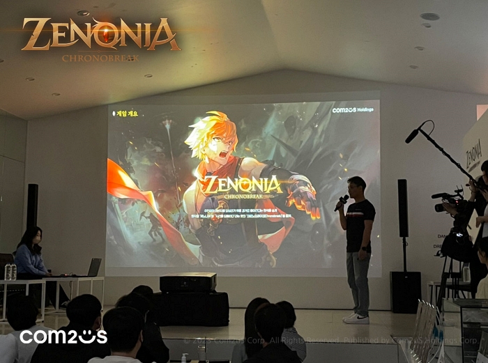 ... 이번 행사는 간단한 다과와 음료는 물론 점심 식사가 참가자 전원에게 제공됐으며, 이후 정소림 캐스터와 컴투스홀딩스 남궁곤 이사가 진행을 맡았다. 짧은 시네마틱 영상 감상 후 사업 담당의 설명을 통해 제노니아의 세계관과 시나리오, 차별화된 다양한 콘텐츠들이 소개되었다. 게
