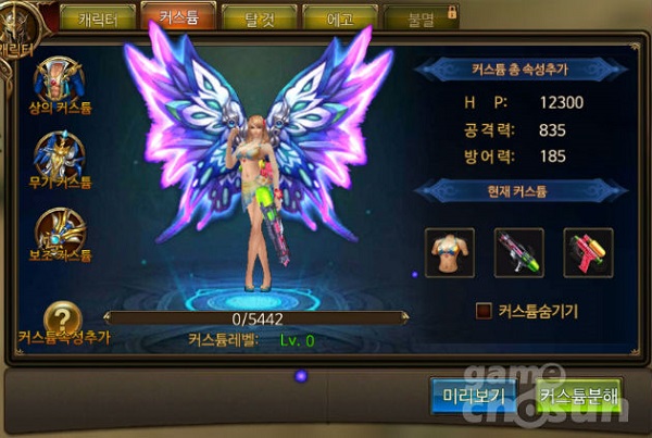 ...▲ 3단계까지 활성화시킨 커스튬 이번에 추가된 커스튬은 단순한 외형 뿐만 아니라 착용 시, 캐릭터 능력치도 큰폭으로 상승한다. 커스튬은 3부위로 이루어져 있으며 각 부위별로 능력치를 올려준다. 뿐만 아니라 같은 부위, 동일한 커스튬은 '활성화'시스템을 통해 최대 3번까지