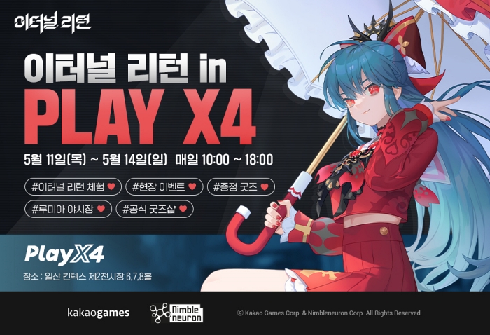 ... 행사 기간 중 진행되는 이벤트로는 '퀴즈쇼 도전! 이리벨' 및 '이터널 리턴 SNS 채널 구독 이벤트', '이터널 리턴 부스 SNS 인증 이벤트', '실험체 빙고 맞추기', '코스프레 인증 이벤트' 등이