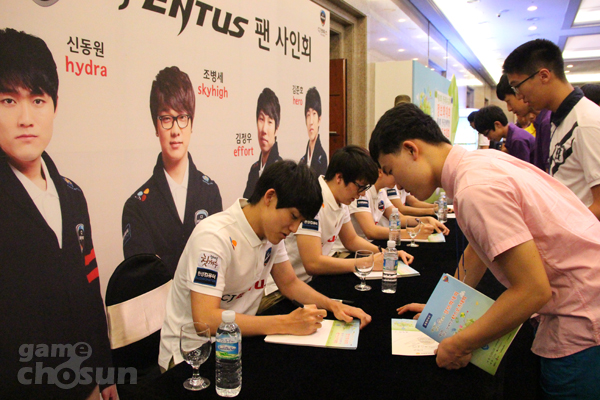 ... 이어서 신동원 등이 사인회장에 모습을 보이자 사인지를 내밀었고 휴대폰에 사진을 담기 위해 노력했다. 신동원 등은 장애학생들의 이름을 일일이 물어보고 사인과 함께 응원의 문구도 적어주는 등 팬서비스를 위해 최선을 다했다. 사인을 받은 한 팬은 "프로게이머들을 본 것이 처음이라며 "