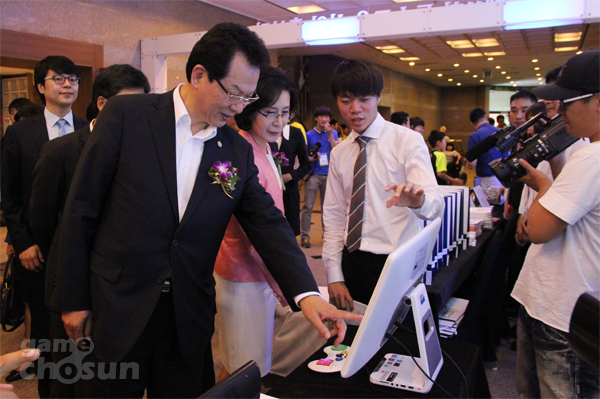 ...이어서 김홍규 CJ게임즈 대표는 "학생 여러분들이 즐긴 '마구마구'와 '차구차구'를 만든 삼촌"이라고 소개한 뒤 "장애 학생들이 보다 즐겁고 재미있다고 느낄 수 있는 게임을 만들 것"을 약속하고 "미래의 게임 개발자들을 만나길 기대한다"고 학생들을 응원했다. 격려사를 위해 행사장을